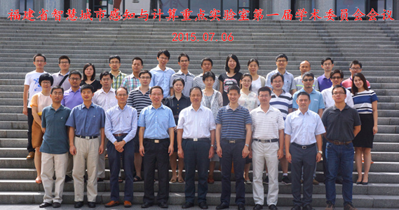 2015年7月6日上午9点,福建省智慧城市感知与计算重点实验室第一届一次学术委员会会议在厦门大学科学艺术中心5号会议室举行。到会学术委员会委员包括,中科院院士、中科院遥感与数字地球研究所郭华东研究员,中国科学院自动化所王飞跃研究员,山东大学计算机科学与技术学院及软件学院院长陈宝权教授,微软亚洲研究院主管谢幸研究员,国防科学技术大学计算机学院副院长卢凯教授,信息科学与技术学院院长兼实验室主任李军教授,信息科学与技术学院副院长兼实验室常务副主任王程教授,实验室副主任王菡子教授,纪荣嵘教授,建筑与土木工程学院副院长雷鹰教授。参会的还有实验室副主任丁兴号教授以及实验室全体教师。会议由学术委员会主任郭华东院士主持。